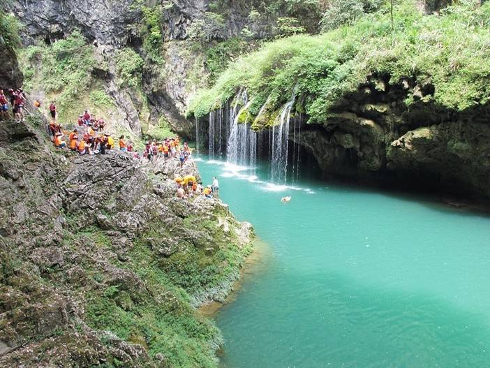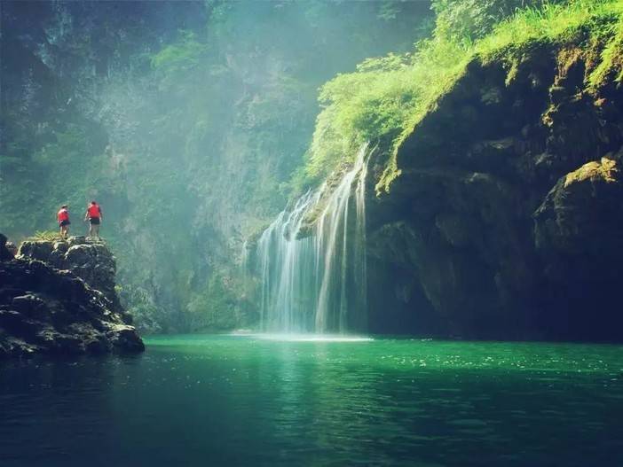 整个峡谷一路的悬坠瀑布,一路的幽潭碧水,穿越过程刺激惊险,风景迤逦。