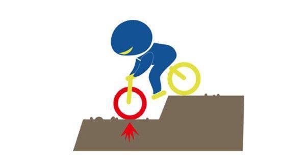 下一阶阶梯或是越过任何种类的障碍都需要暂时放开刹车一下-足以越过障碍的那一下子就够了。障碍带来的冲击再加上刹车带来的冲击铁定让你吃不消。所以当你车子下倾过阶梯时,一定要释放刹车以免你的重心过度向前抛移。