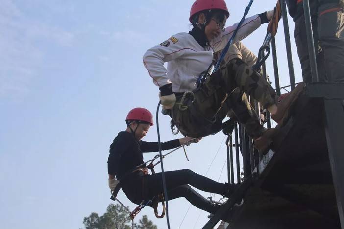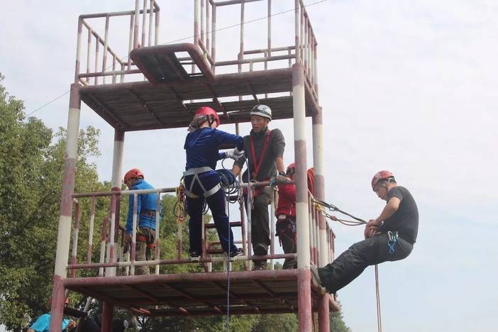 6.下降技术操作:绳结技术(8字结、布林结、渔人结、双套结、意大利半扣、蝴蝶结、水结、绳尾结、抓接、单结、活套)、保护技术(上方保护技术)、下降技术(单绳下降、双绳下降)、保护点设置(人工场地、自然场地)、简易绳索操作(简易安全带制作及保护、下降、简易背架、担架及其他绳索操作技术);