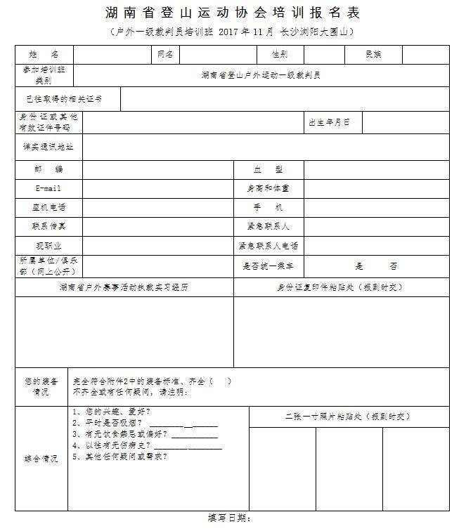 附件:1.2017湖南省登山户外运动一级裁判员报名表