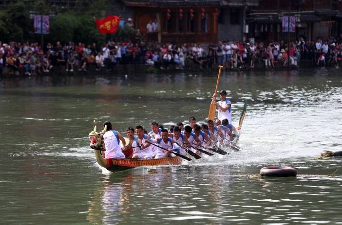 赛龙舟,凤凰当地人又称划龙船,是凤凰各族同胞纪念屈原,以祭祀和祈求来年风调雨顺的一种方式,至今已在凤凰已经有数百年的历史。