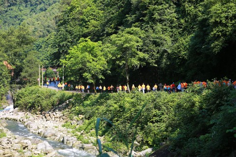 选手穿梭在森林公园里,享受森林氧吧的清新空气,感受舜皇山如画的美景,同时也有考验体力的山坡路段。